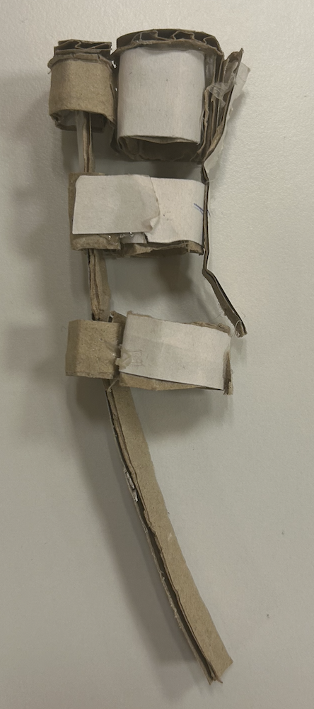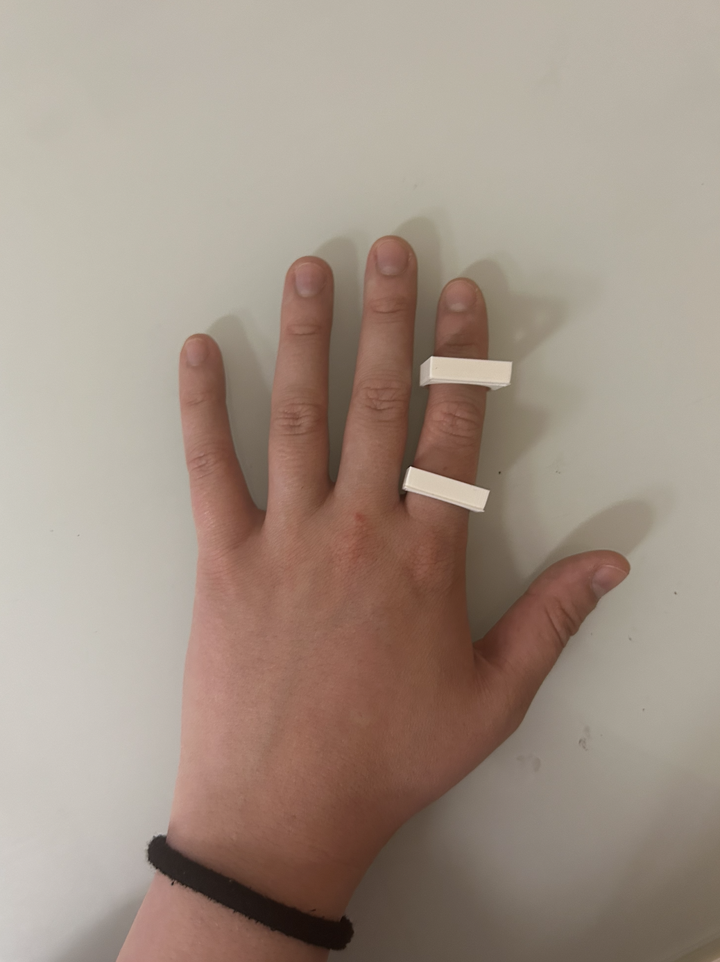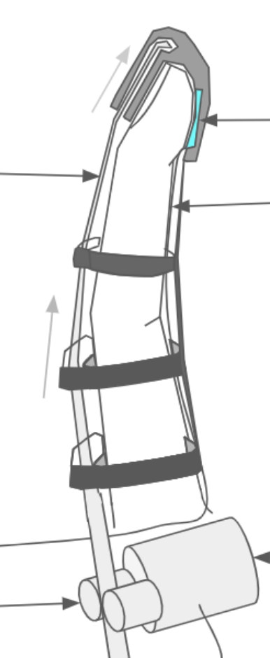 Dans le schéma suivant, nous avons besoin de bagues qui entourent le doigt et qui permettent de faire passer une barre rigide qui poussera le doigt.