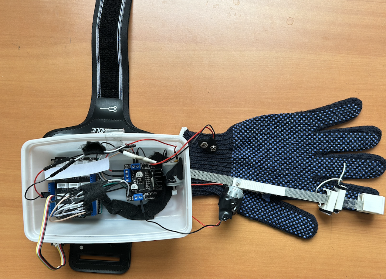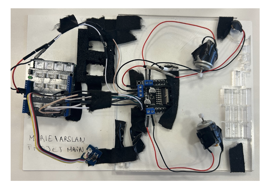 Il y a deux moteurs actionné par le code Arduino permettant de créer la force qui pousse notre doigt lors du mouvement de préhension.