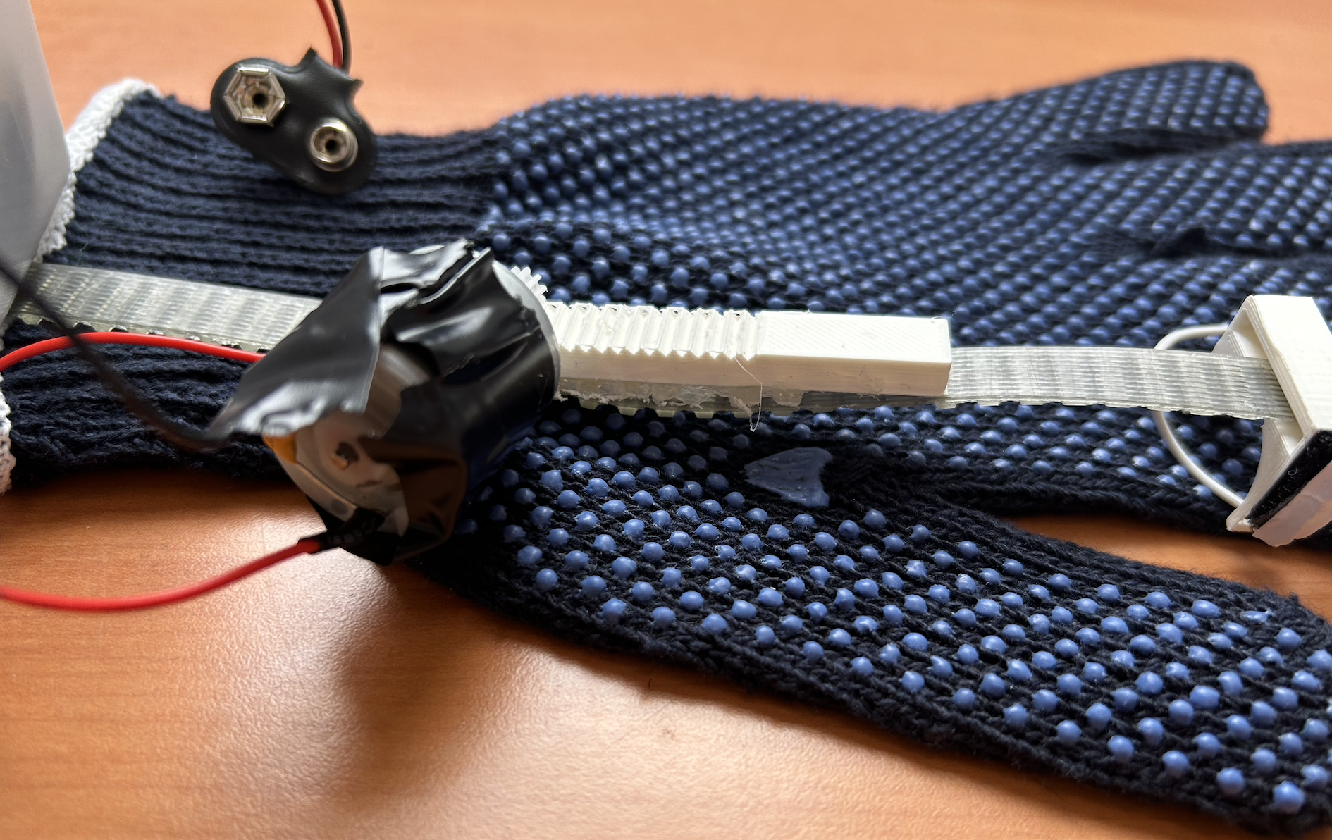 C'est sur cette étape que nous avons éprouvé des difficultés. En effet au moment d'assembler le dispositif Arduino et notre dispositif pour le doigt, nous avons remarqué que la force exercé par le moteur ne suffisait pas pour pousser le doigt et son dispositif.